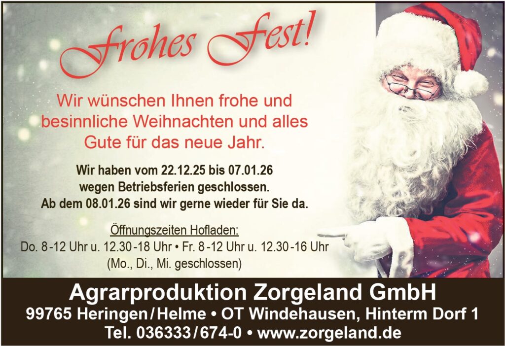 Herzlich willkommen auf den Internetseiten der Agrarproduktion Zorgeland GmbH Windehausen.